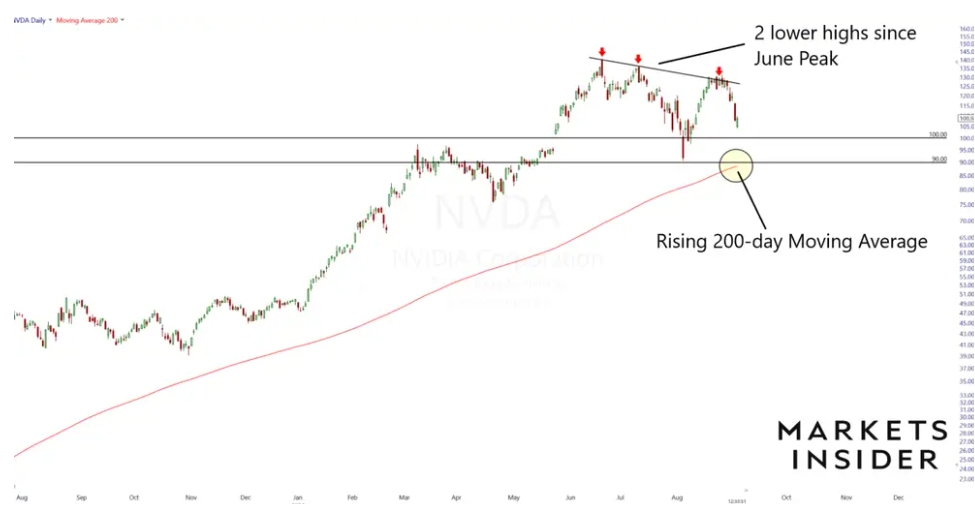 "若跌破8月低点,将暗示英伟达可能失去市场领导地位。"