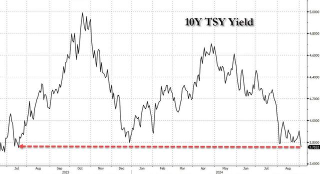 10年期美债收益率连续第二天下滑,跌至3.75%,为今年以来的最低水平,也是去年7月以来的最低水平。